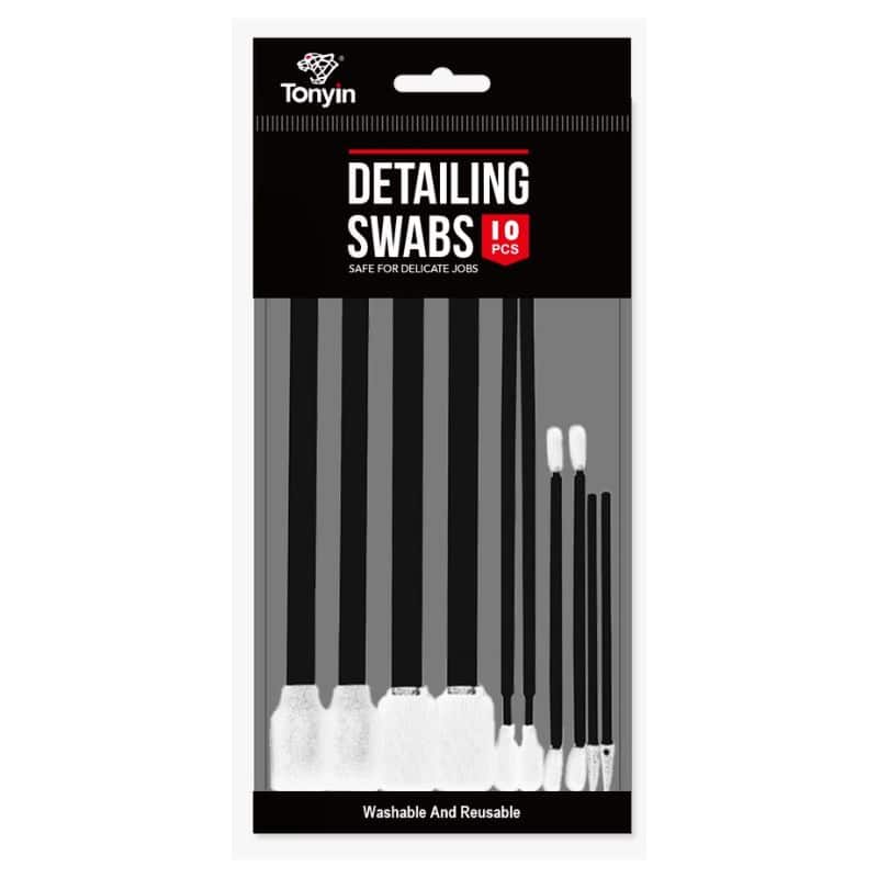 Elke verpakking bevat 10 hoogwaardige swabs, zodat je altijd voldoende bij de hand hebt voor een complete detailbeurt. Dankzij hun stevige maar flexibele steel behouden ze hun vorm tijdens gebruik, zelfs bij intensief detailwerk.